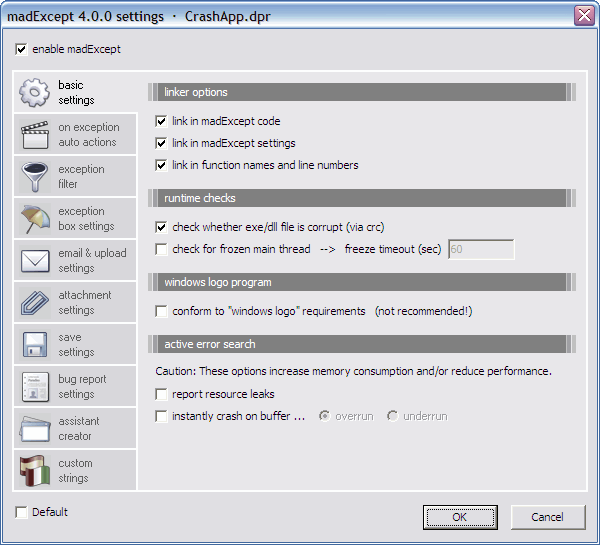 madExcept settings dialog